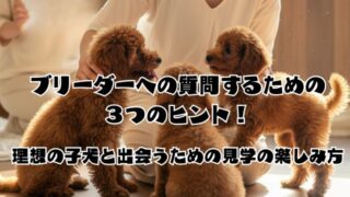 飼い主準備・お迎えガイドブリーダーへの質問するための3つのヒント!理想の子犬と出会うための見学の楽しみ方 ブリーダーへの質問するための3つのヒント!理想の子犬と出会うための見学の楽しみ方。ブリーダーへの質問するための3つのヒントと、理想の子犬と出会う見学の楽しみ方。題して、ブリーダーへの質問するための3つのヒント!理想の子犬と出会うための見学の楽しみ方 2025.10.16飼い主準備・お迎えガイド