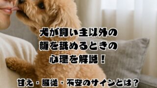 犬全般に関すること犬が飼い主以外の顔を舐めるときの心理を解説!甘え・服従・不安のサインとは? 犬が飼い主以外の顔を舐めるときの心理を解説!甘え・服従・不安のサインとは?犬が飼い主以外の顔を舐めるときの心理を解説すると、甘え・服従・不安のサインがあるようです。題して、犬が飼い主以外の顔を舐めるときの心理を解説!甘え・服従・不安のサインとは? 2025.10.13犬全般に関すること