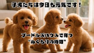 子犬紹介(家族募集専用)子犬たちは今日も元気です!プードルズハウスで育つ“ぬくもりの時間” 子犬たちは今日も元気です!プードルズハウスで育つ“ぬくもりの時間”。子犬たちは今日も元気です。プードルズハウスで育つ“ぬくもりの時間”感じています。題して、子犬たちは今日も元気です!プードルズハウスで育つ“ぬくもりの時間”。ではどうぞ。 2025.10.09子犬紹介(家族募集専用)