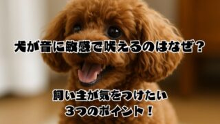 しつけ・行動の悩み犬が音に敏感で吠えるのはなぜ?飼い主が気をつけたい3つのポイント! 犬が音に敏感で吠えるのはなぜ?飼い主が気をつけたい3つのポイント!犬が音に敏感で吠えるのはなぜでしょう。飼い主が気をつけたい3つのポイントを解説します。題して、犬が音に敏感で吠えるのはなぜ?飼い主が気をつけたい3つのポイント!ではどうぞ。 2025.10.13しつけ・行動の悩み